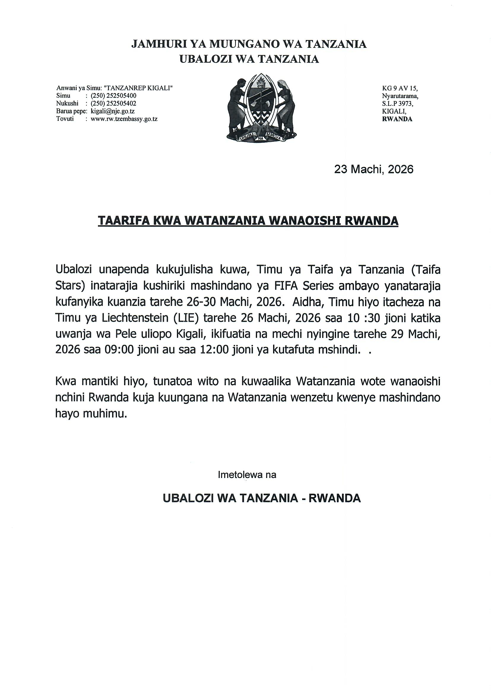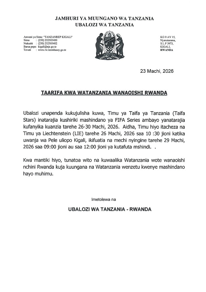 TAARIFA KWA WATANZANIA WANAOISHI RWANDA
