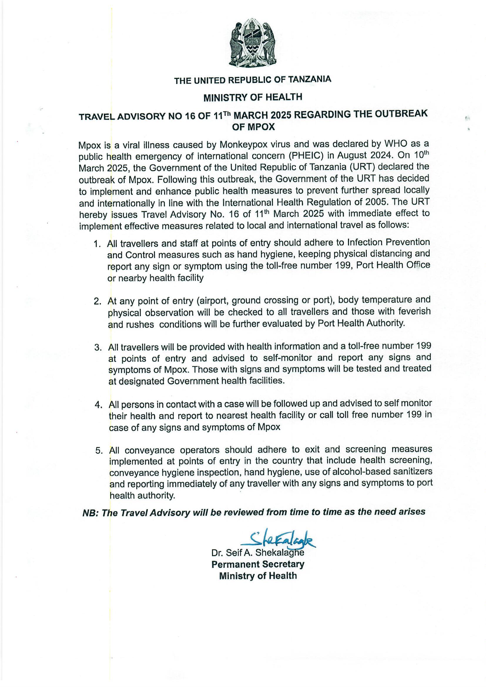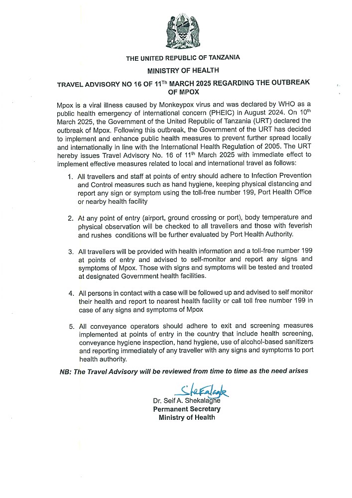 Travel Advisory No. 16 of 11th March, 2025 Regarding the Outbreak of MPOX